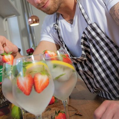 Han forkæler med masser af fræk æltning, god stemning, sjov og ballade. I får ikke kun serveret noget godt til maven, men også kolde drinks til ganen…. For mens bollerne hæver, mixer han også smagfulde drinks til jer. Her vil han shake, ryste numse og flashe sine store muskler mens han laver skønne drinks til jer.